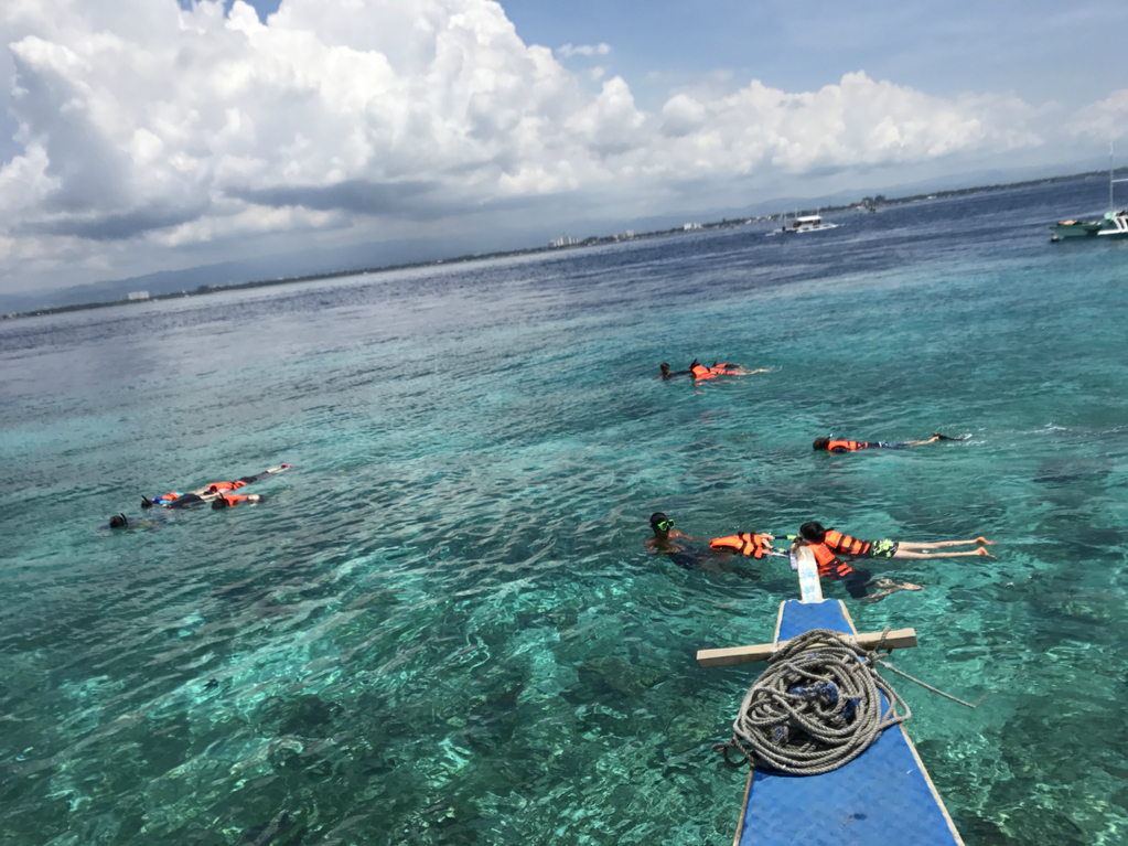 필리핀 전동 배인 방카보트를 타고 올랑고섬 달리마 스노쿨링 포인트에서