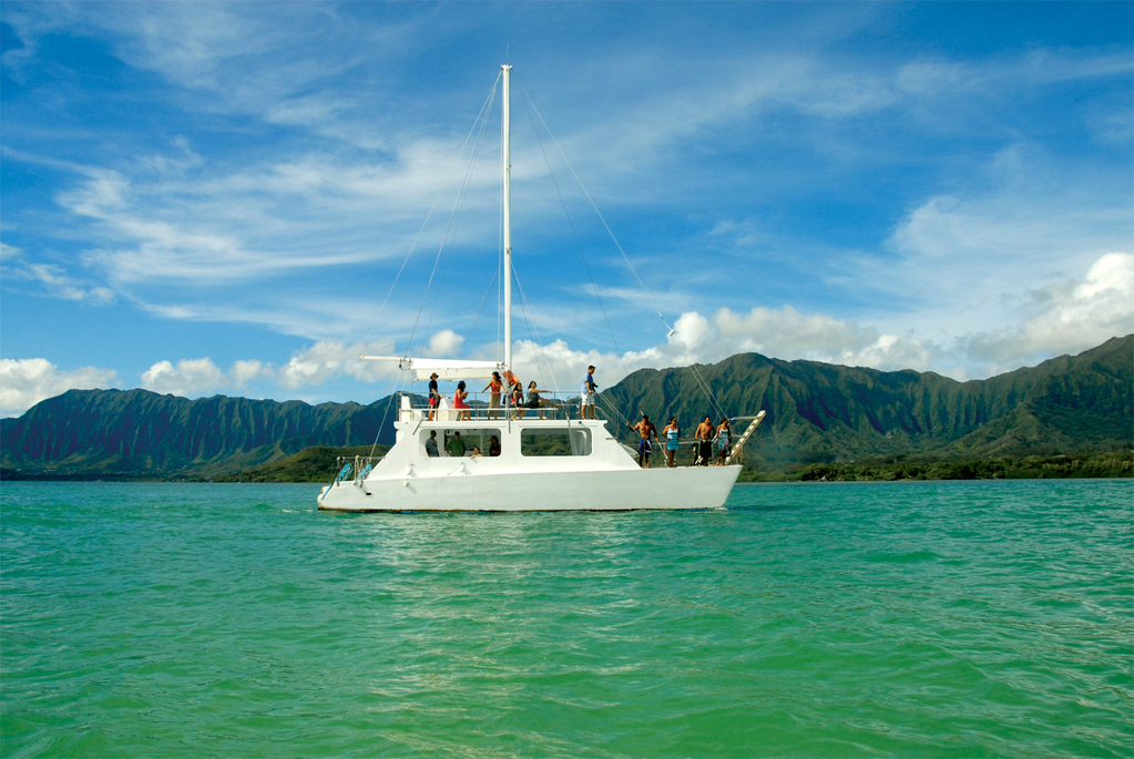 - 800년 역사의 하와이 고대 양식장을지나 시크릿 섬에서 쌍동선을 타고 카네오헤 만을 유람 합니다. 유명한 모콜리이(중국인 모자섬) 가까이에서 아름다운 사진을 찍으실 수 있습니다. 운이 좋으시다면 바다 거북이도 보실 수 있습니다.